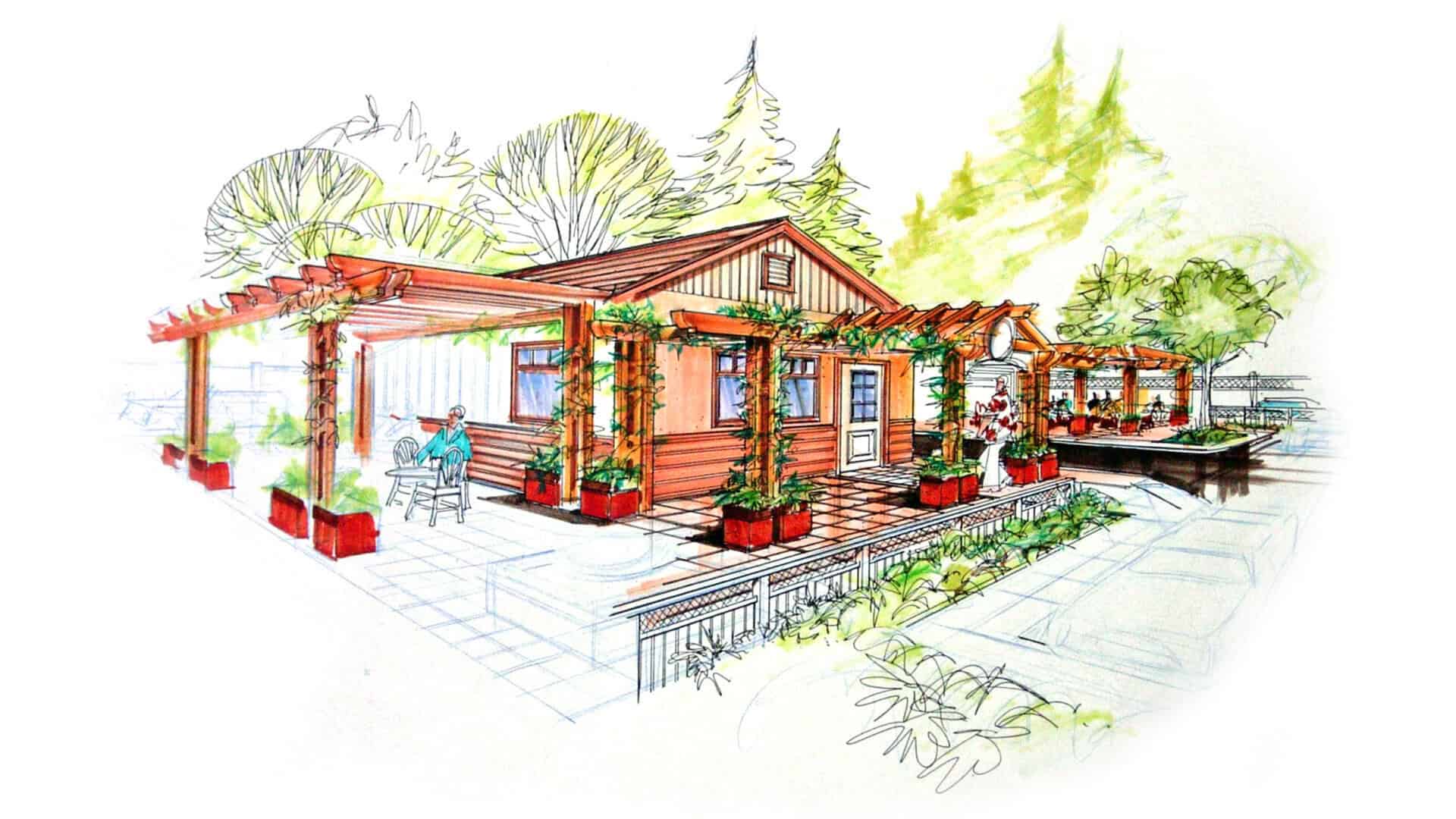 Perspective renderings are a lost art, but Lauren Anderson keeps this essential skill alive. His hand-drawn perspective renderings are visual storytelling pieces that bring depth, warmth, and personality to any project. More than just technical drawings, these renderings help clients truly feel the project and fall in love with the vision before construction begins.   The hand drawn representations bring a personal attachment to the presentations.
